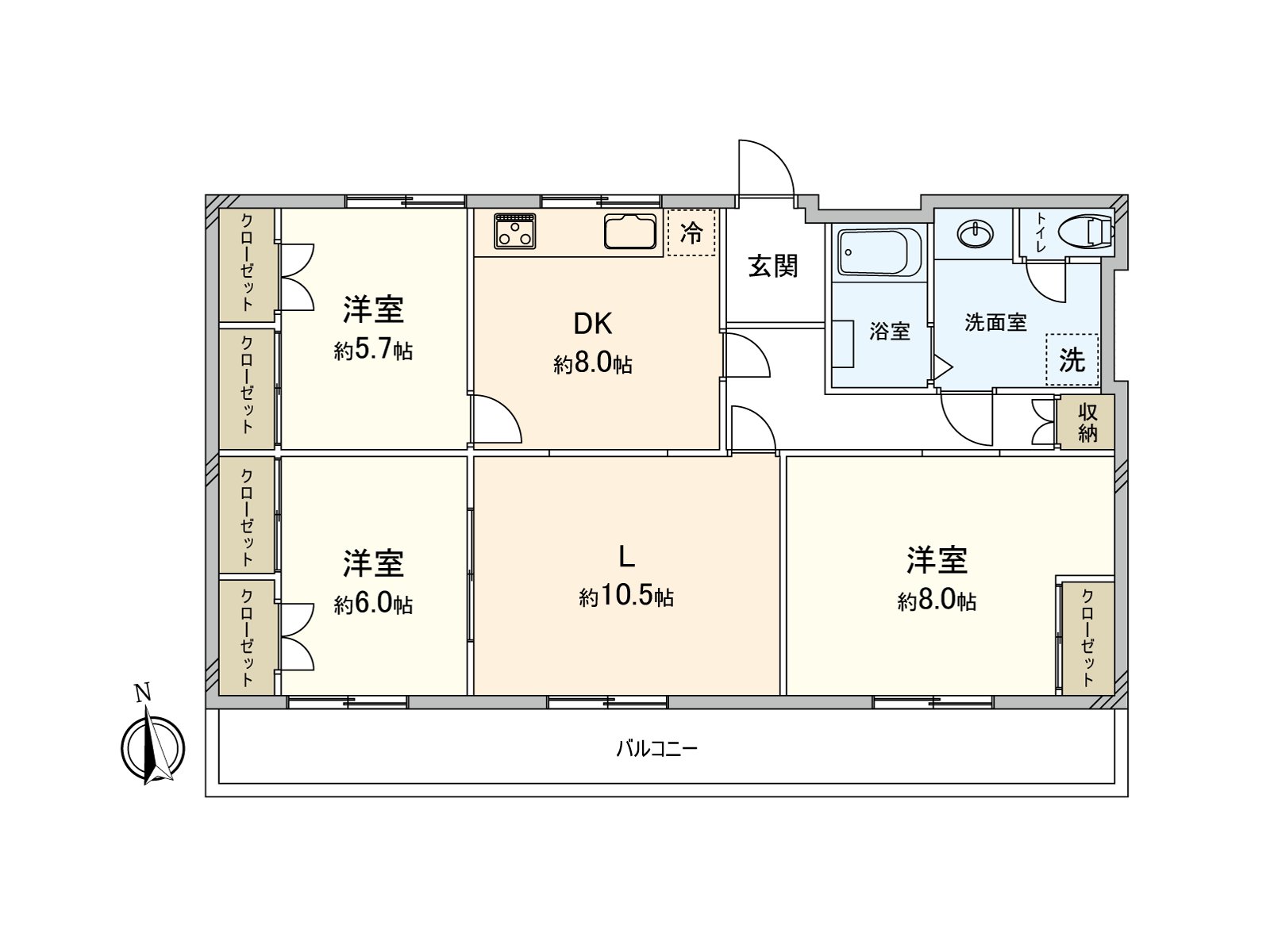 ・有私人使用面積85.53平方公尺×3LDK的舒適的房間