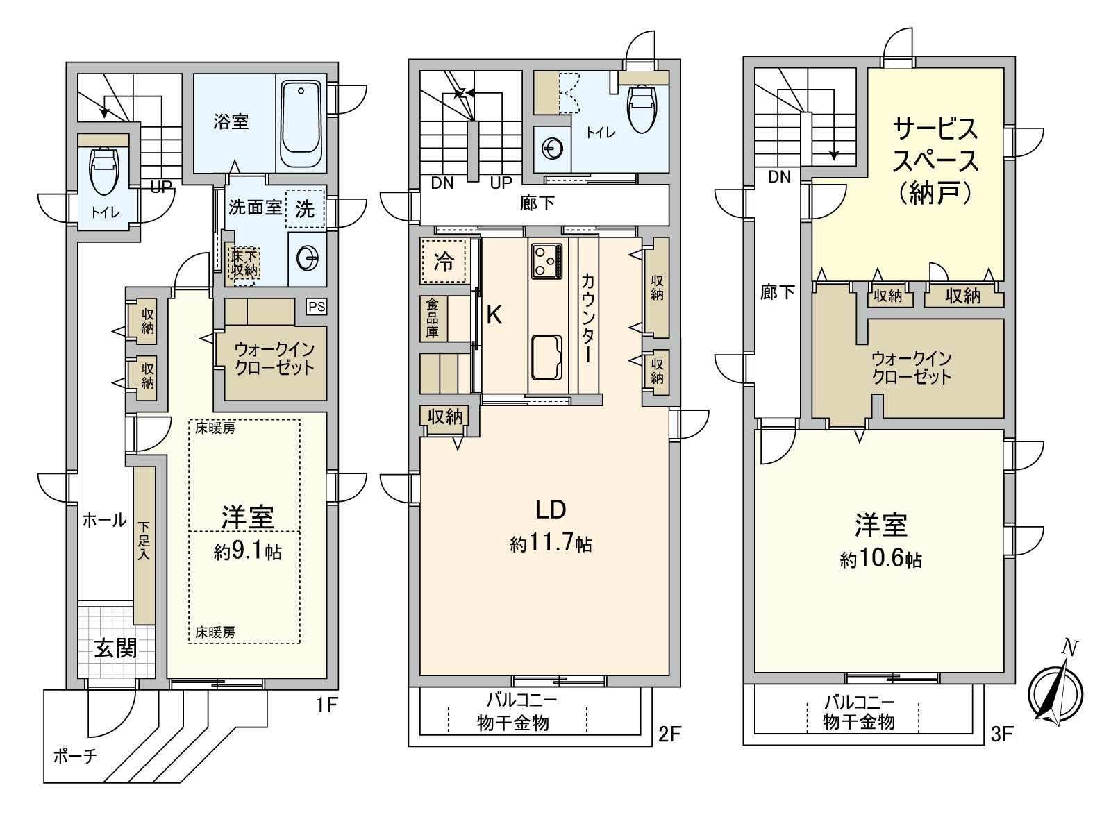 ・1樓,3樓有嵌入式衣櫃,收納豐富