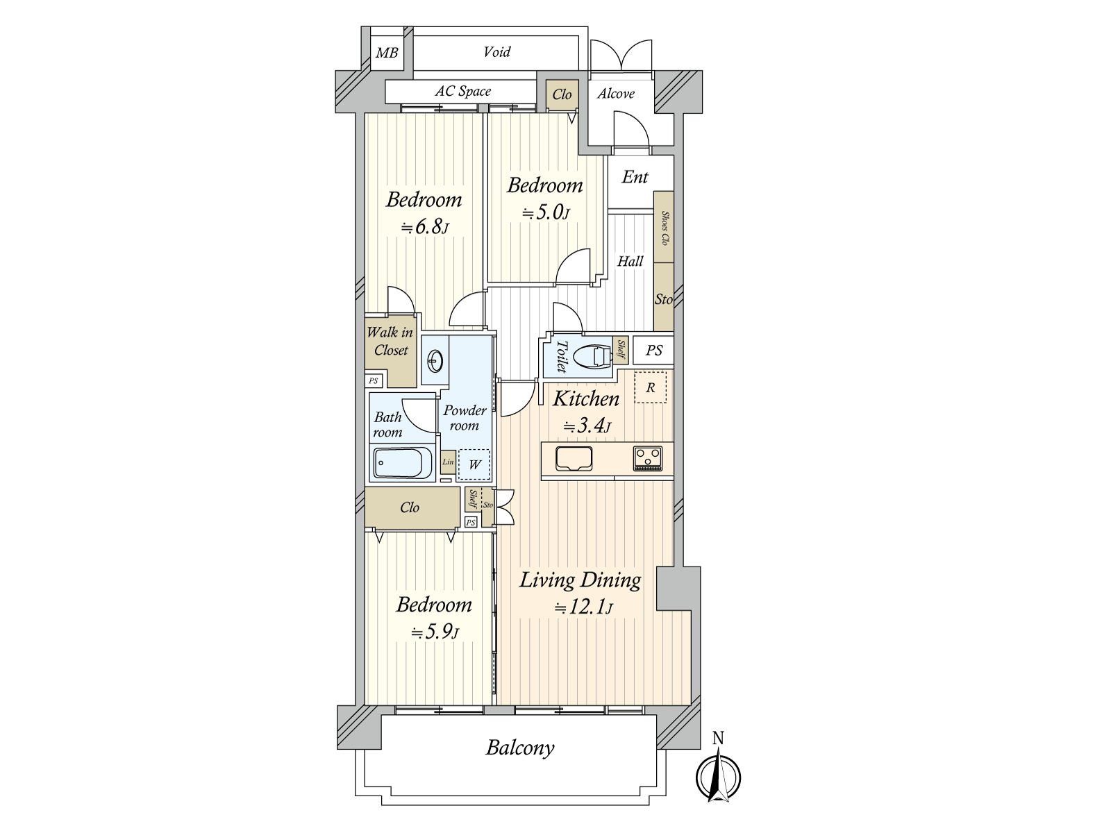 ・有私人使用面積約76.59平方公尺的舒適的3LDK