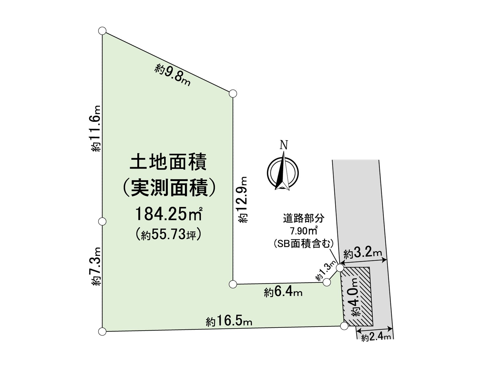 ・土地面積184.25平方公尺(約55.73坪)
