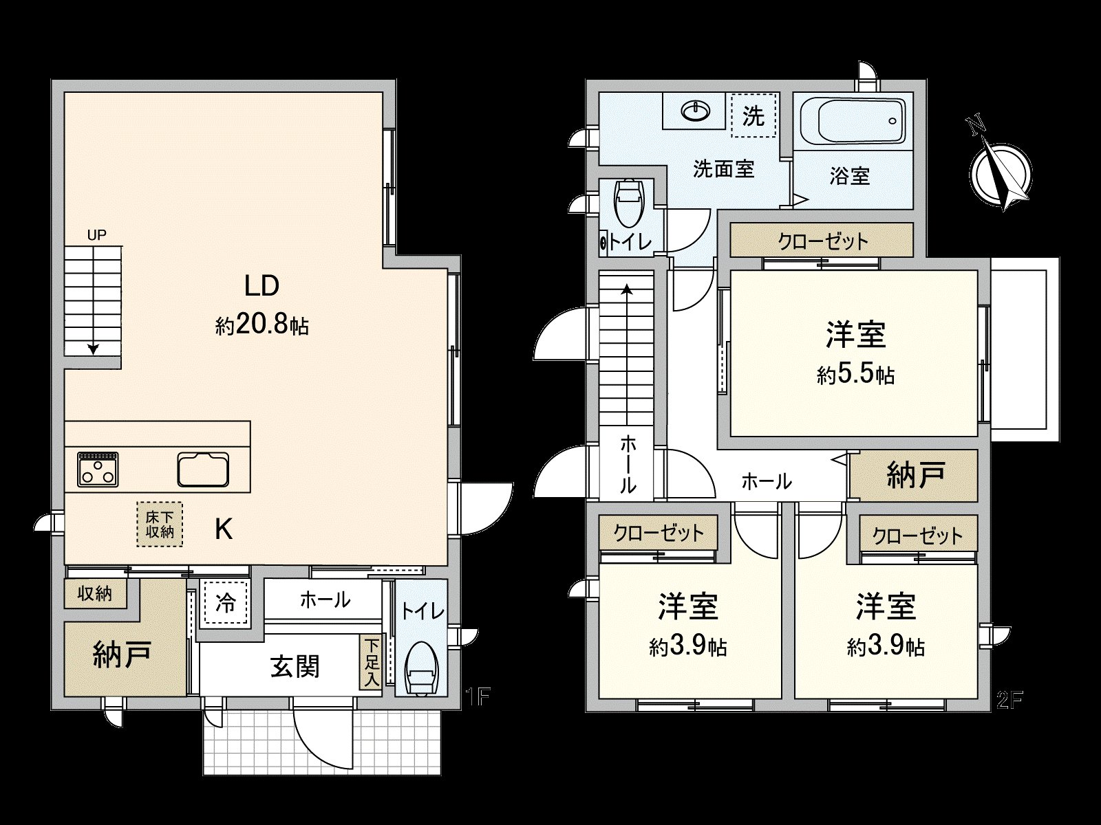 廣闊的餐具室(食品庫)、地板下邊收納、冰箱收納