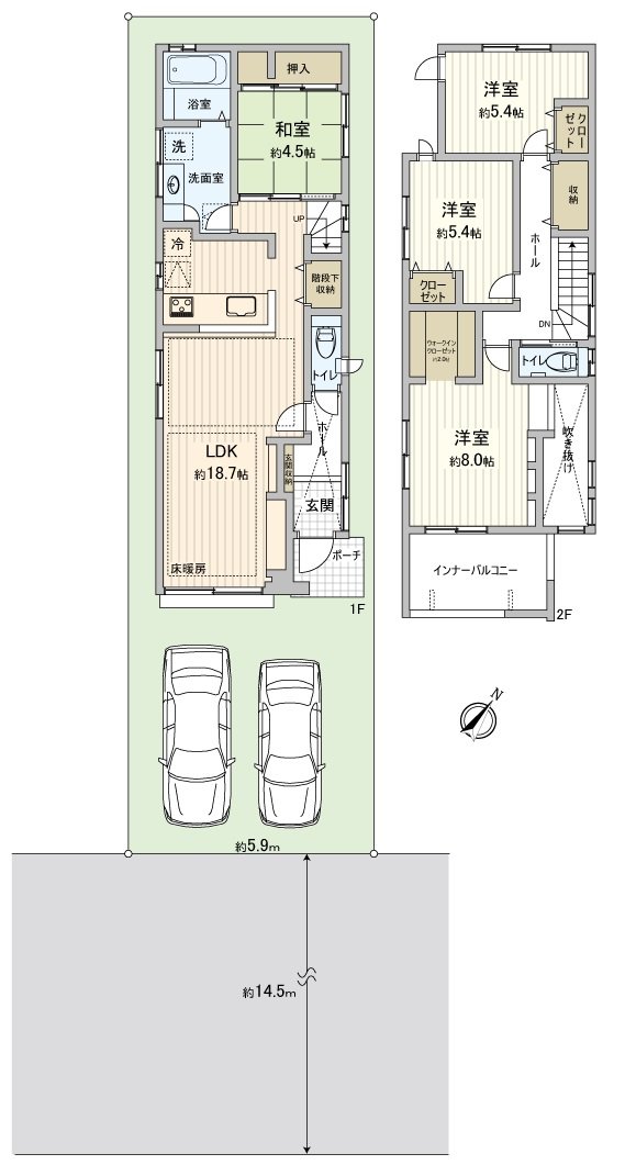 ・ 每前面道路約14.5m有開放感覺