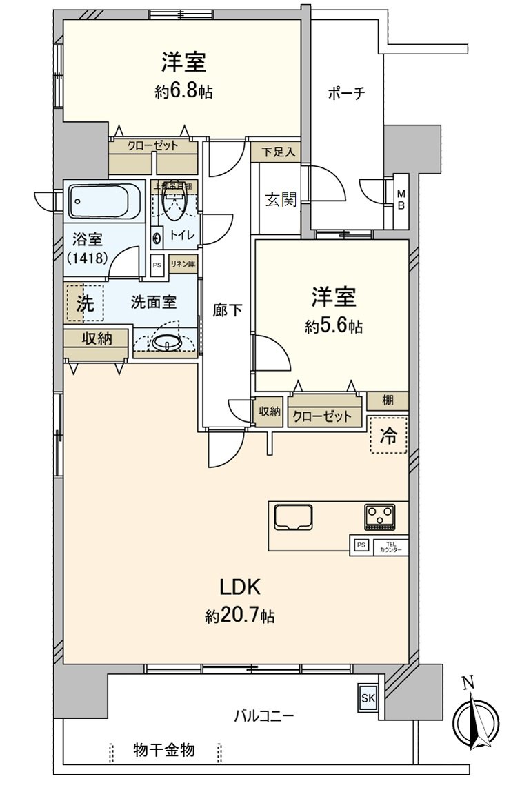 ・約20.7張塌塌米LDK,亮的開敞式廚房