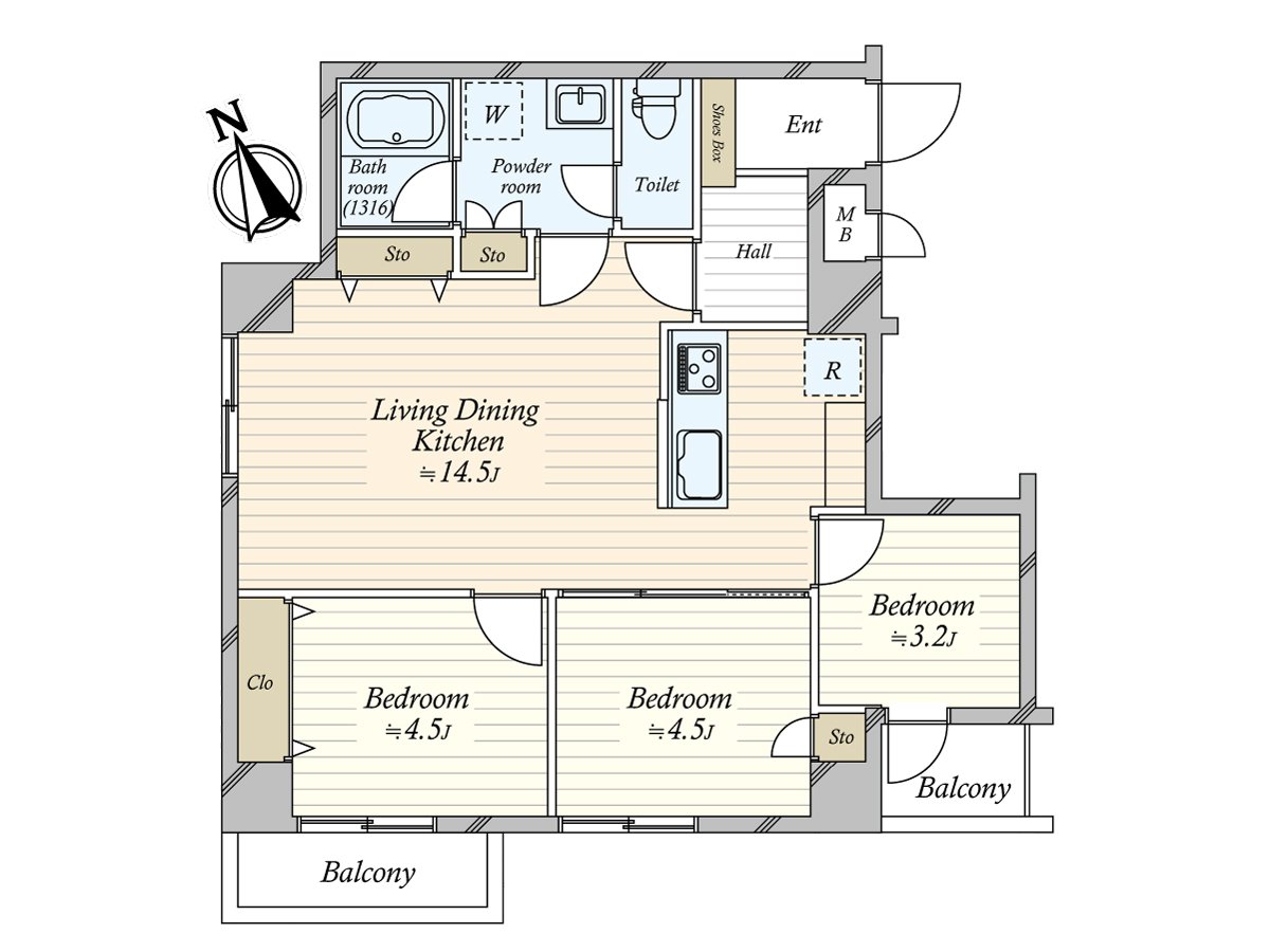 0 私人使用面積60.42平方公尺,3LDK的間取