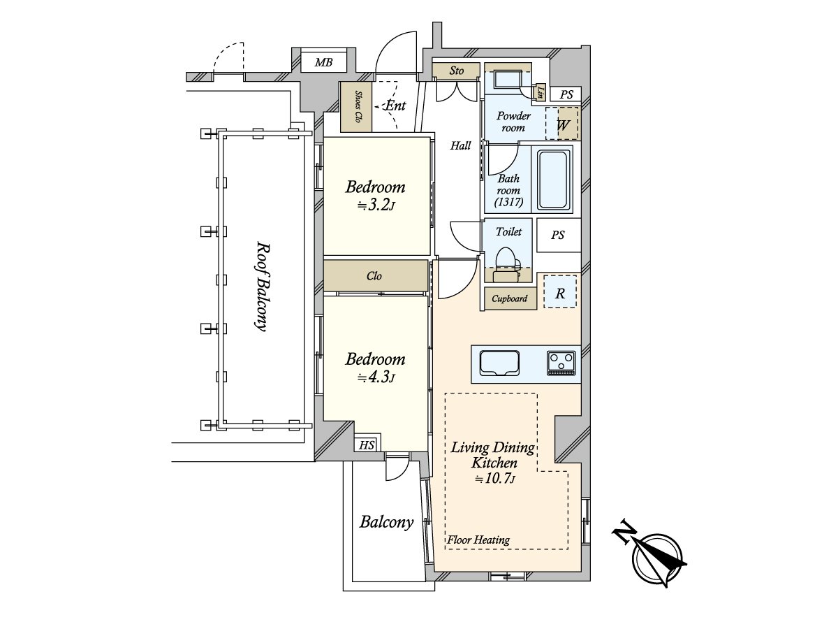 ○ 頂樓無隣接住戸的1層2家設計安靜,并且可以度過