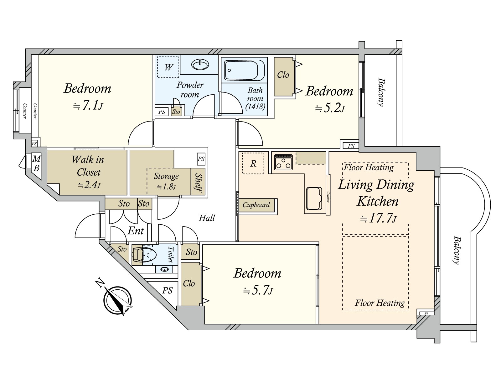 0 私人使用面積90.44平方公尺,3LDK的間取
