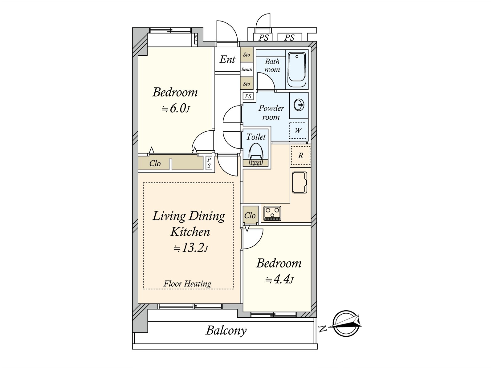 0 私人使用面積52.95平方公尺,2LDK的間取