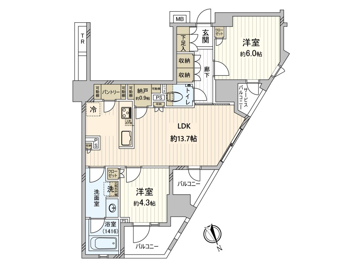 ○ 61.63平方公尺的2LDK