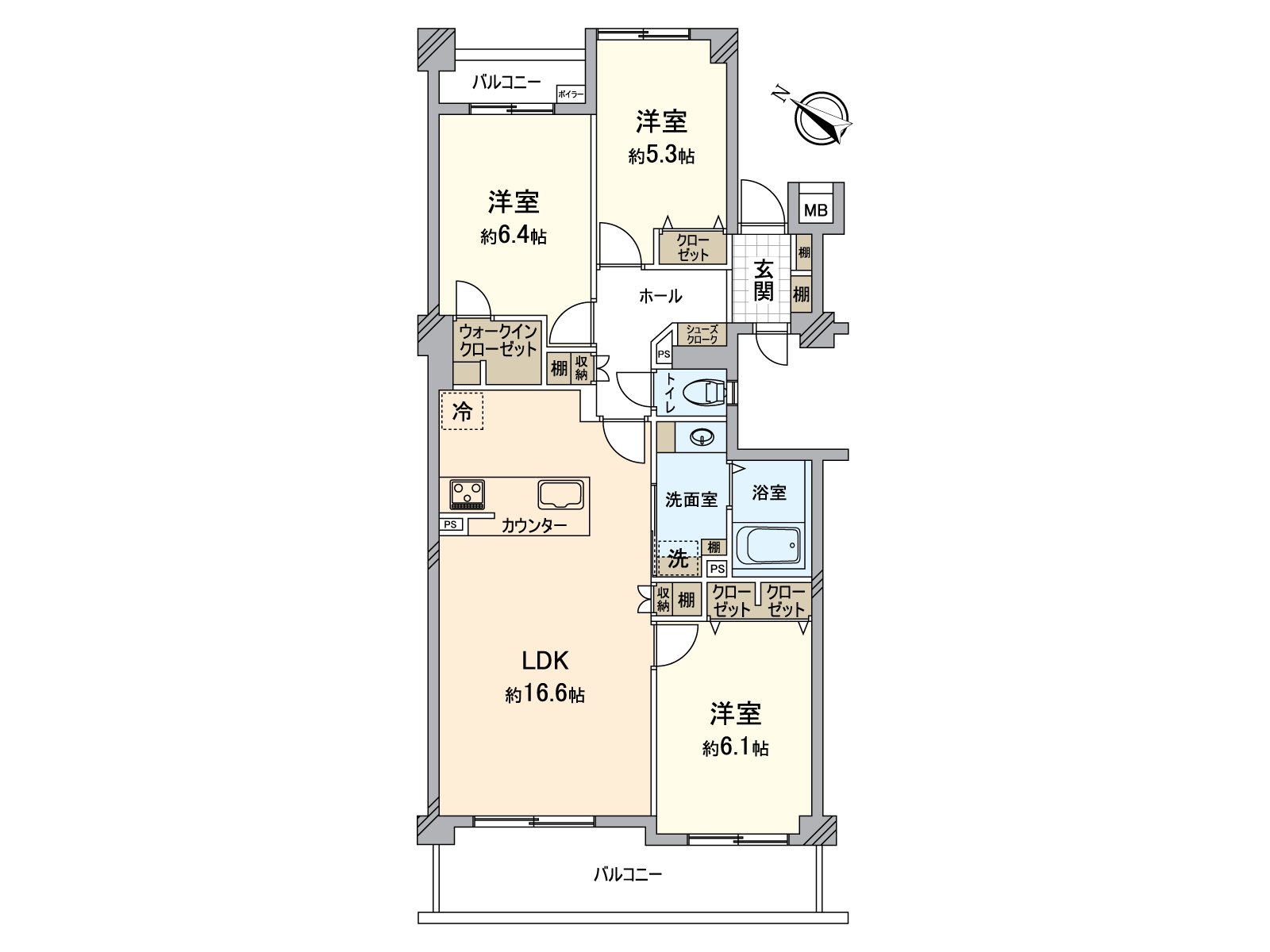 ・在約6.4張塌塌米西式房間,嵌入式衣櫃有