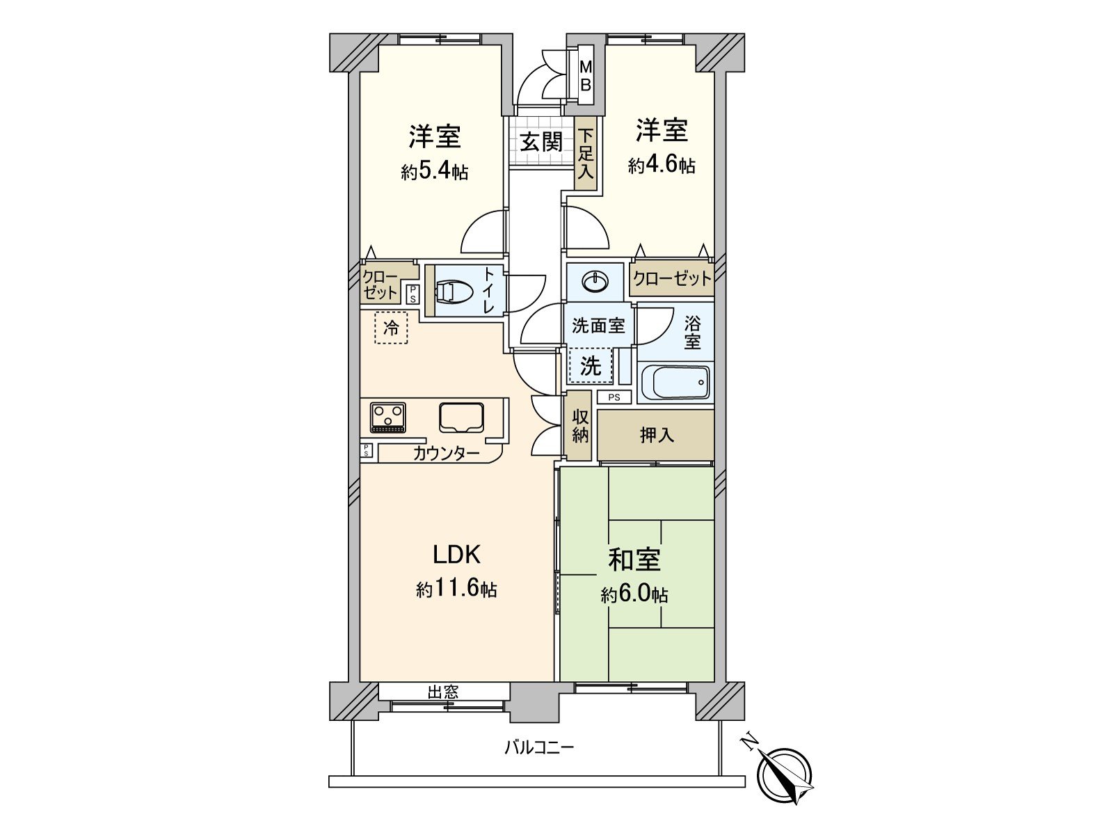 ・設計客餐廳和到底能使用的和式房間的3LDK
