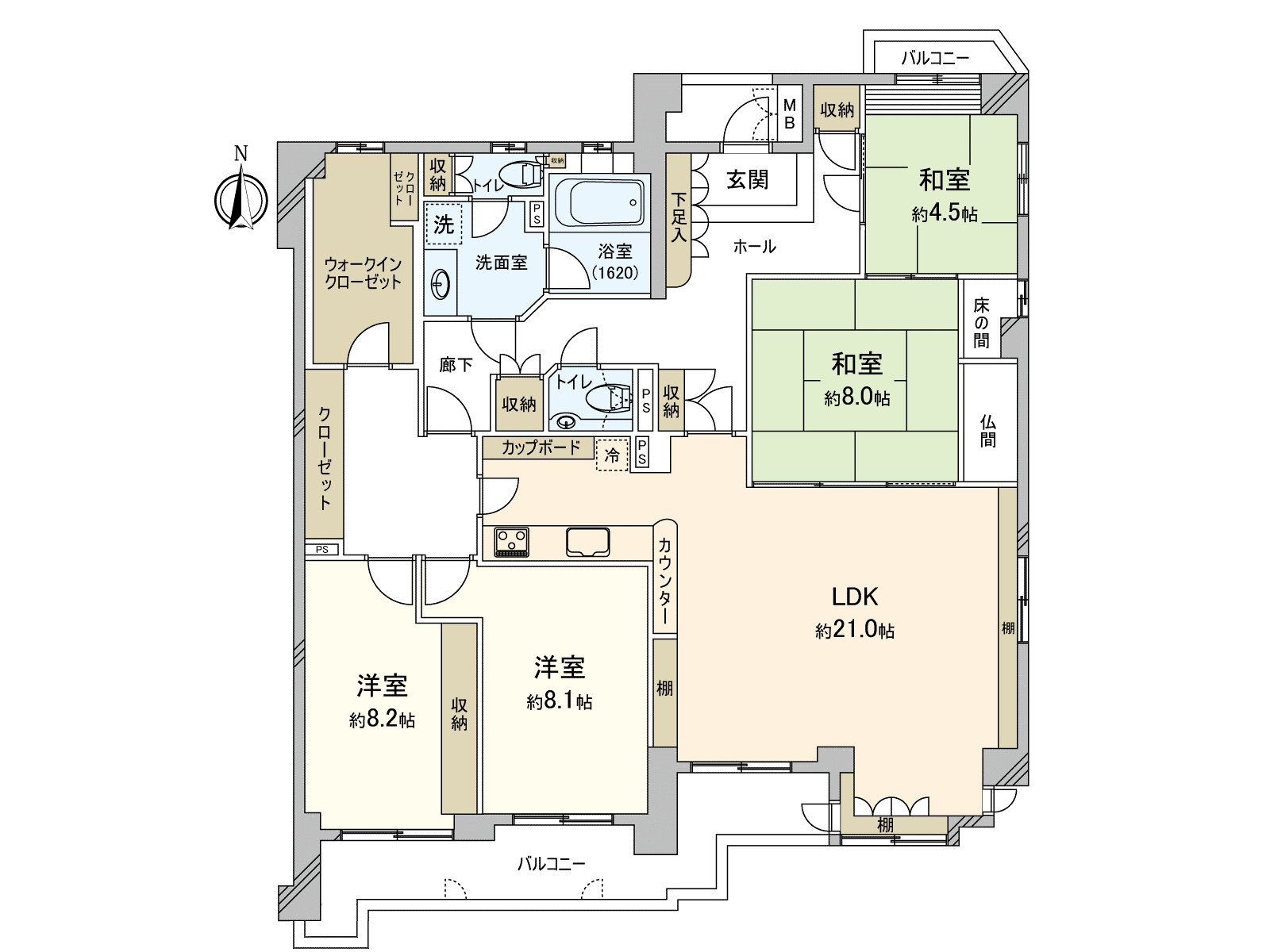 ・有超過8.0張塌塌米各西式房間,能結實地確保私人的空間