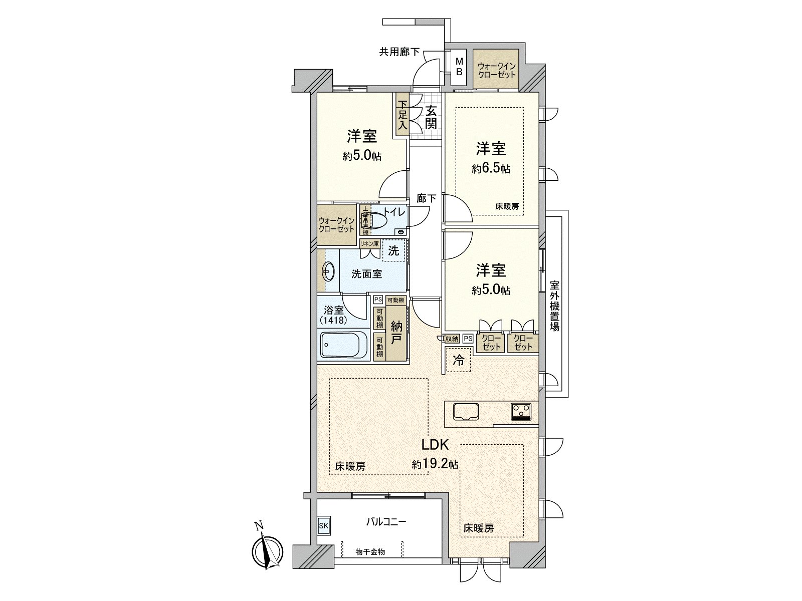 ・在約6.5張塌塌米、約5.0張塌塌米的西式房間,便於收藏的嵌入式衣櫃