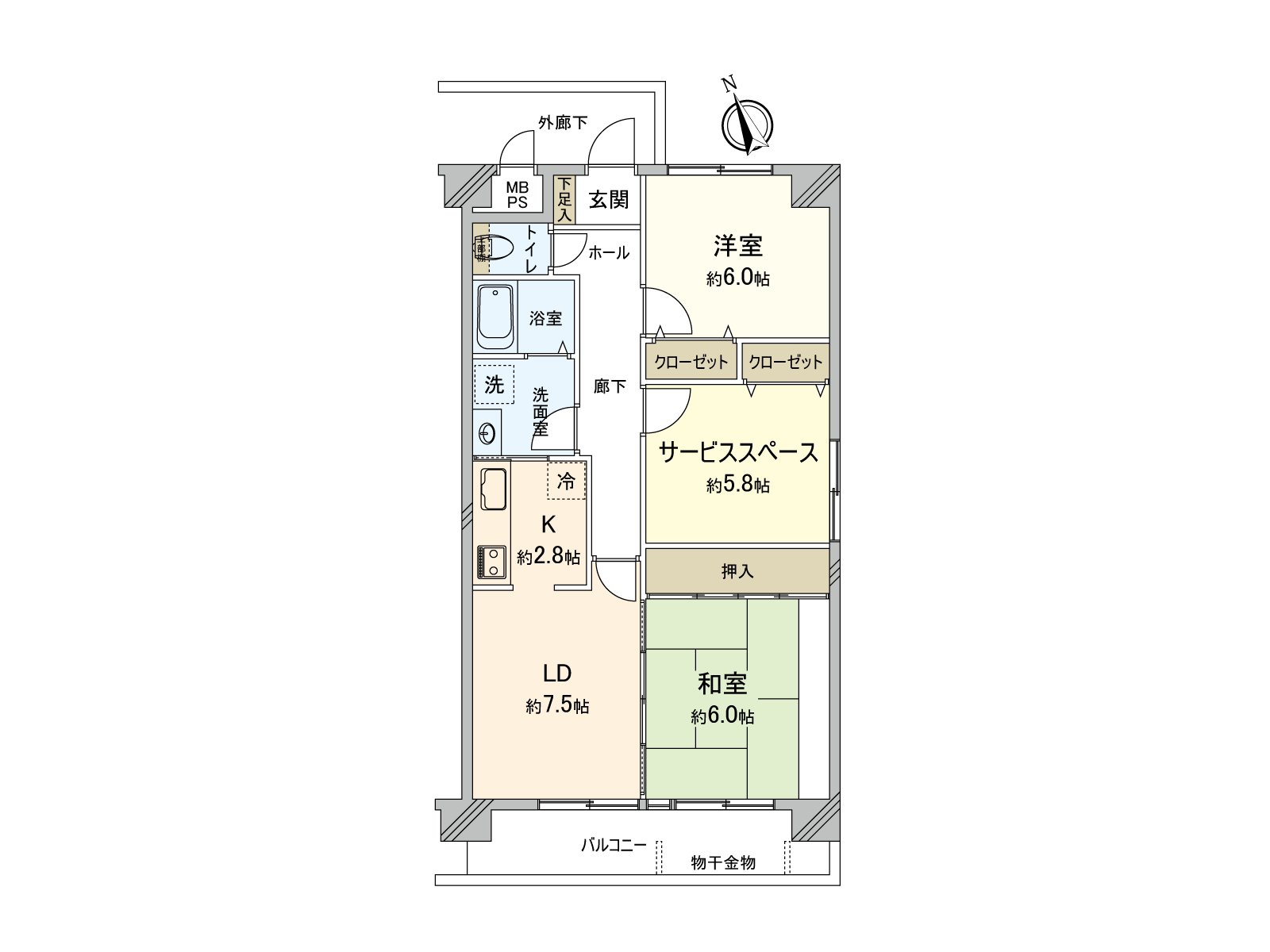 0設置客餐廳和到底能使用的和式房間的2SLDK