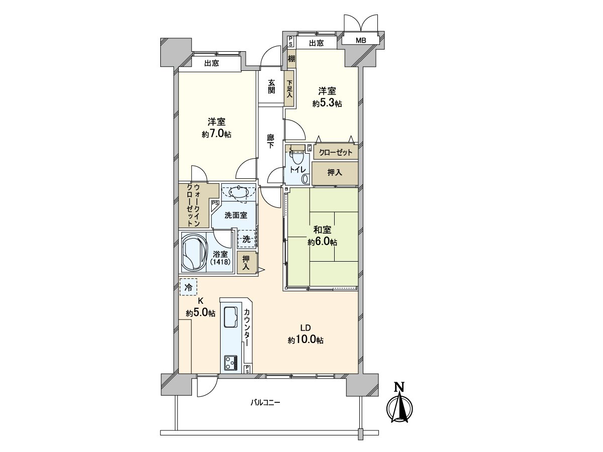 ○ 私人使用面積71.86平方公尺的3LDK