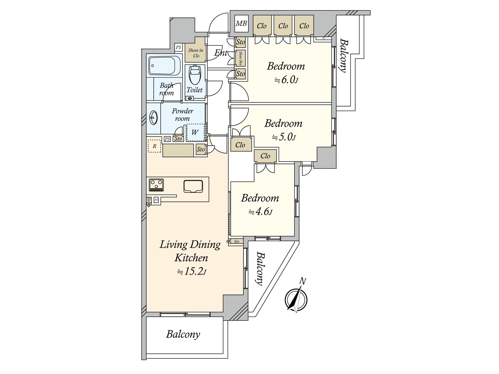 ・約6.0張塌塌米,約5.0張塌塌米,約4.6張塌塌米3個房間
