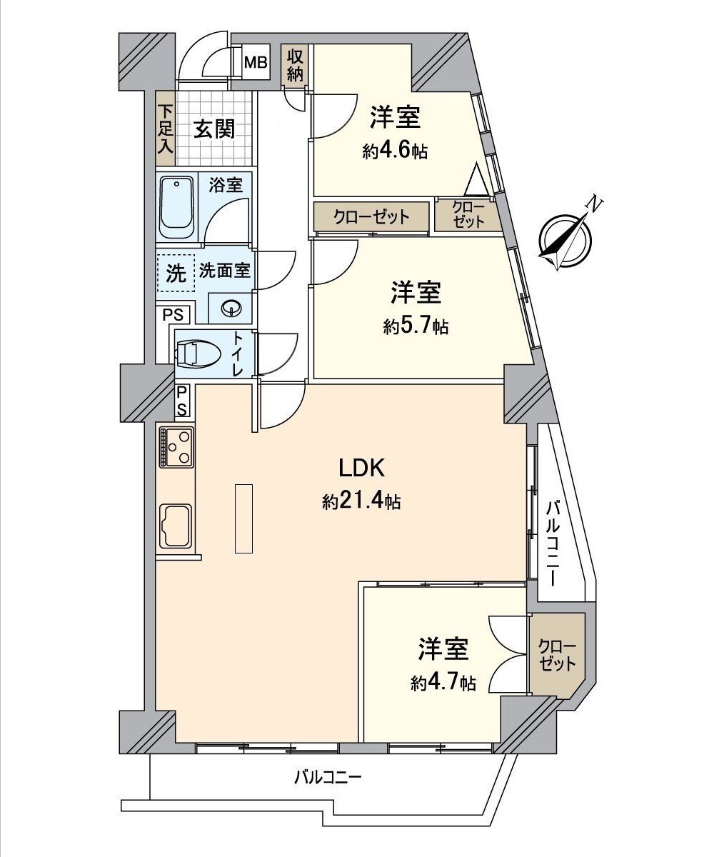 新的換貼:地板(LDK、西式房間),Cross(所有房間),層瓷磚(洗臉室、廁所、門口)