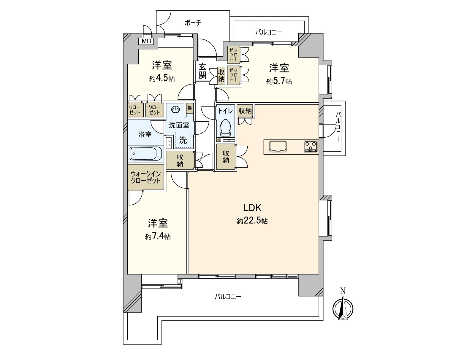 ・私人使用面積約83平方公尺的3LDK,約22.5張塌塌米寬敞的LDK