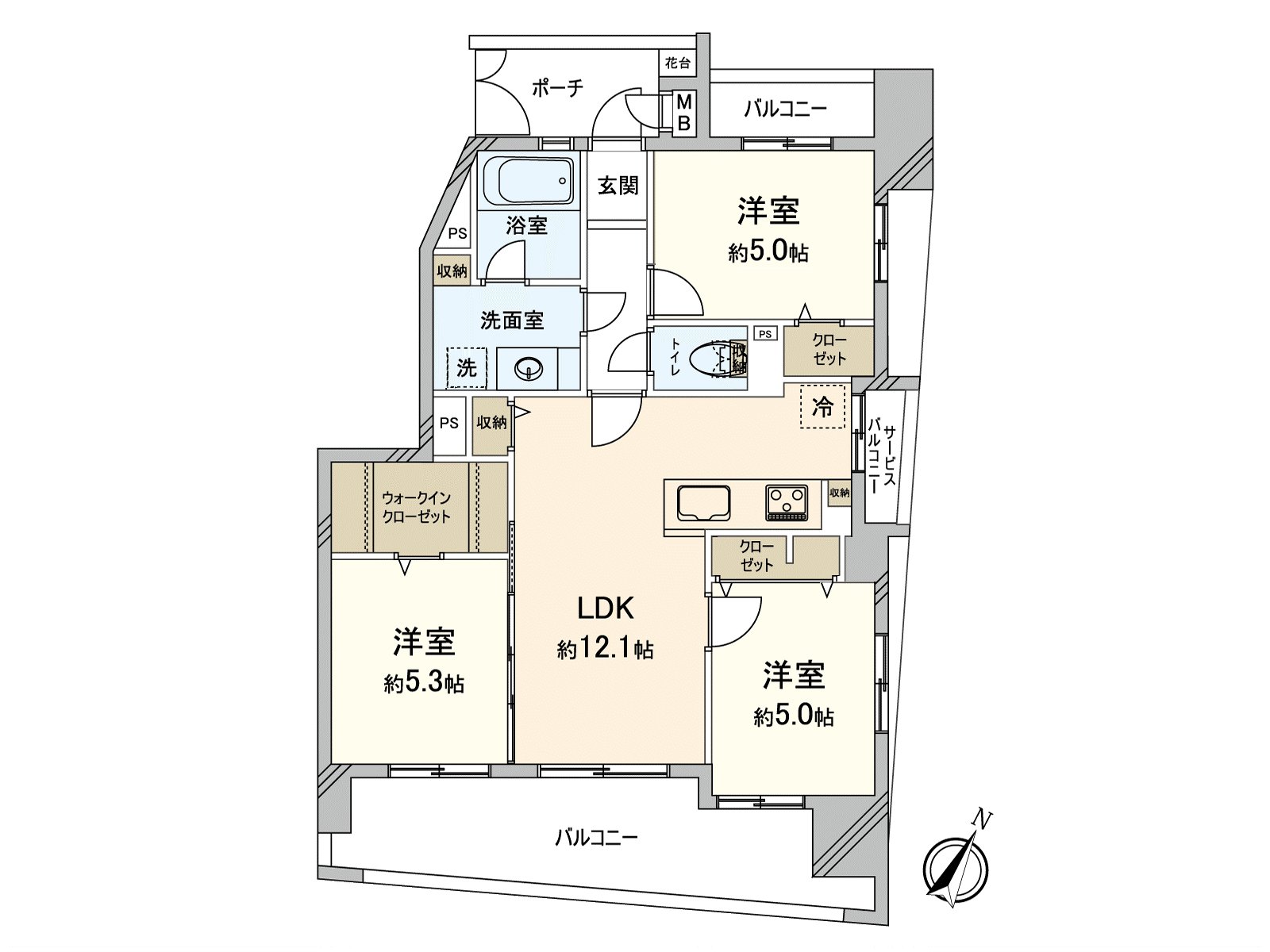 ・私人使用面積65.68平方公尺的3LDK
