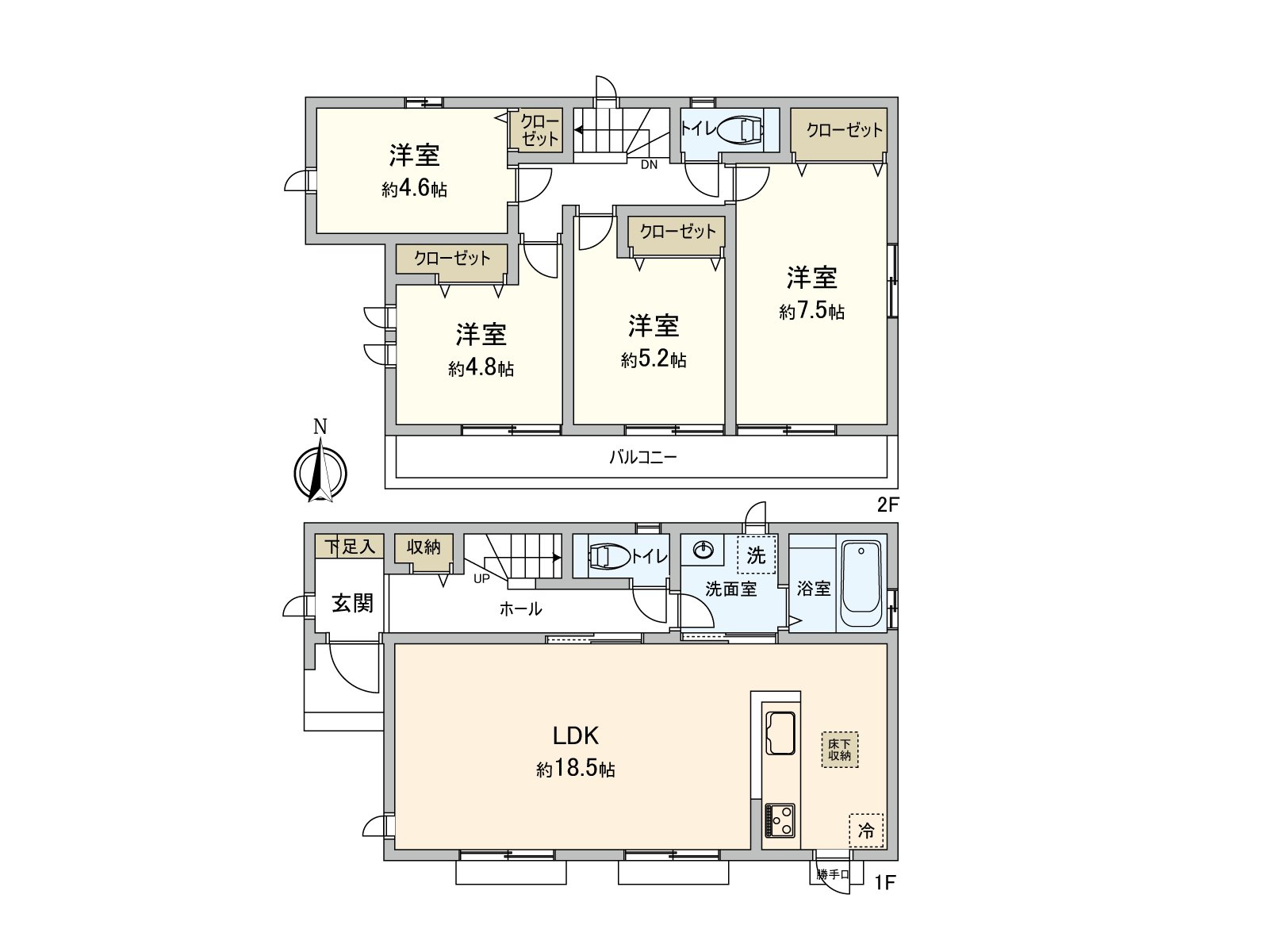 ・有木造2階建、地板下邊收納,收納豐富的4LDK新建房屋住宅