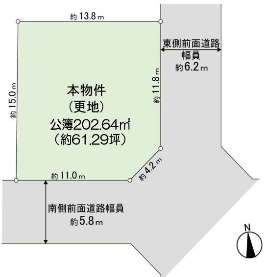 ・前面道路是東面幅員約6.2m、南側約5.8m的公路