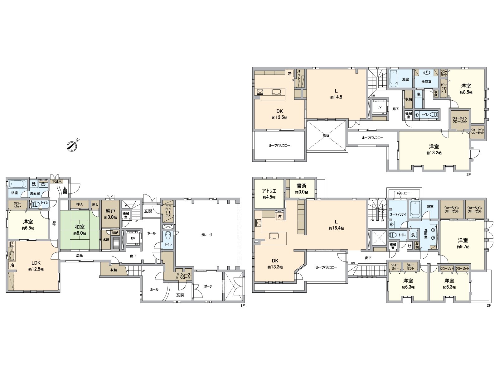 0 在分別的住戸LDK和有水周圍的分離型3戶住宅