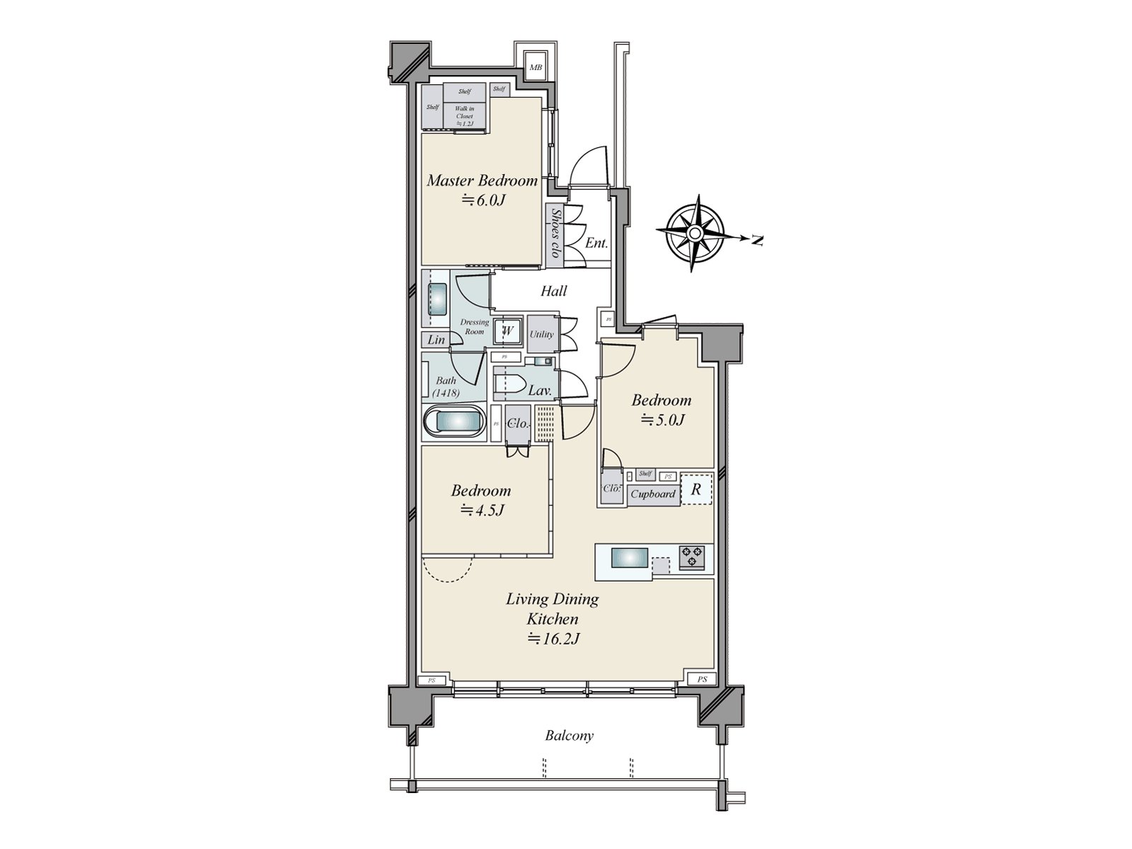 ・面向陽台的寬敞的約16.2張塌塌米LDK