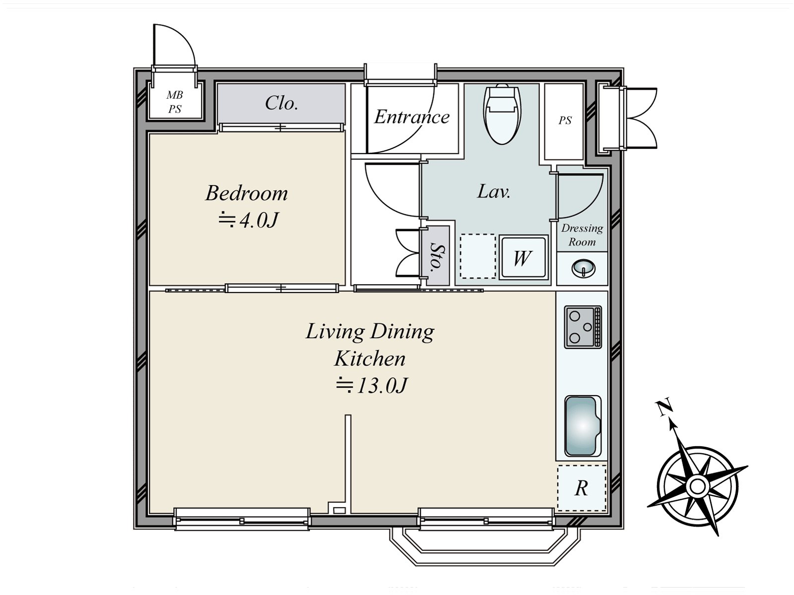 ・對13張榻榻米LDK,西式房間4張榻榻米壁櫥完備