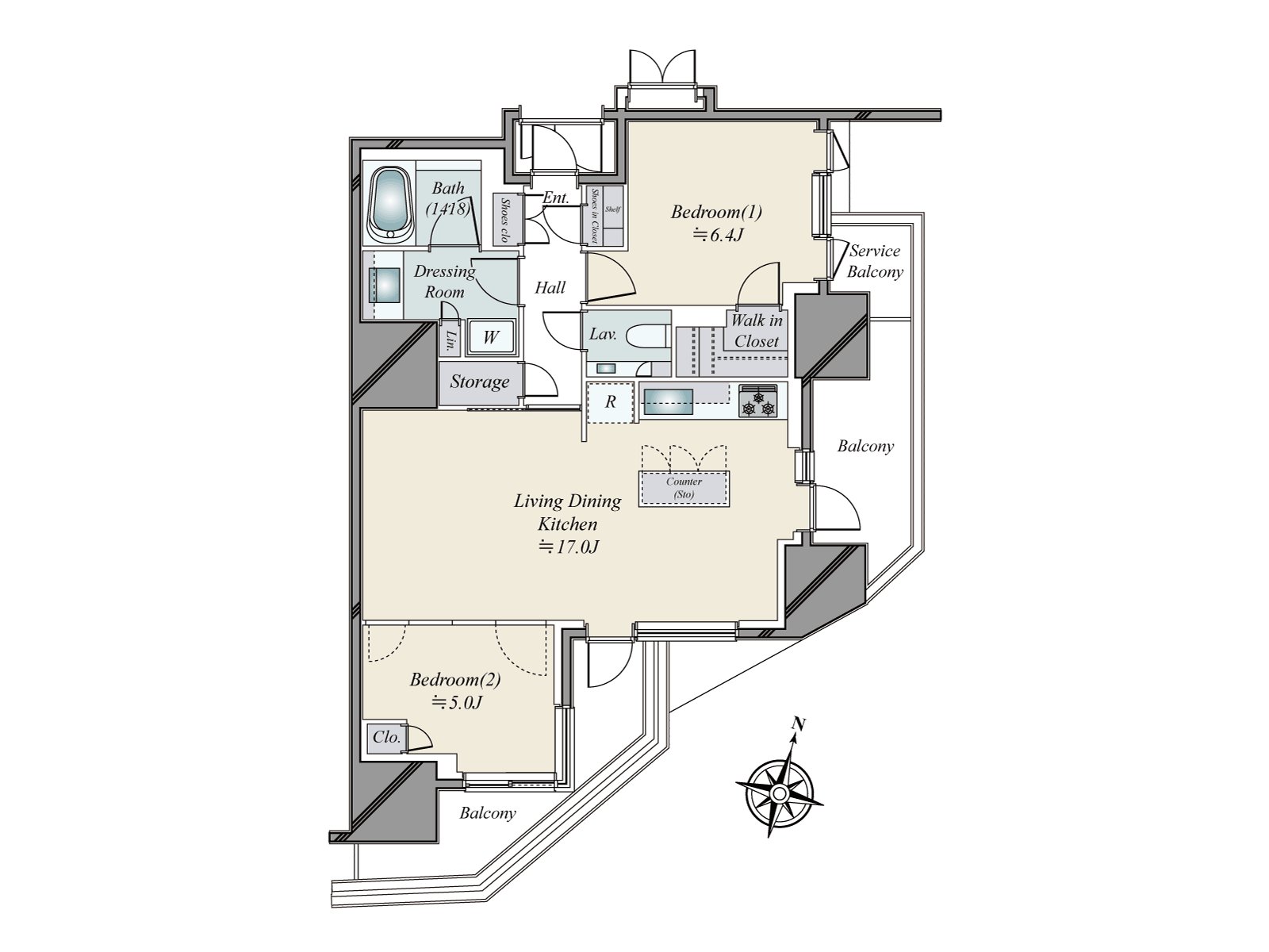・是私人使用面積67.15平方公尺的2LDK計劃