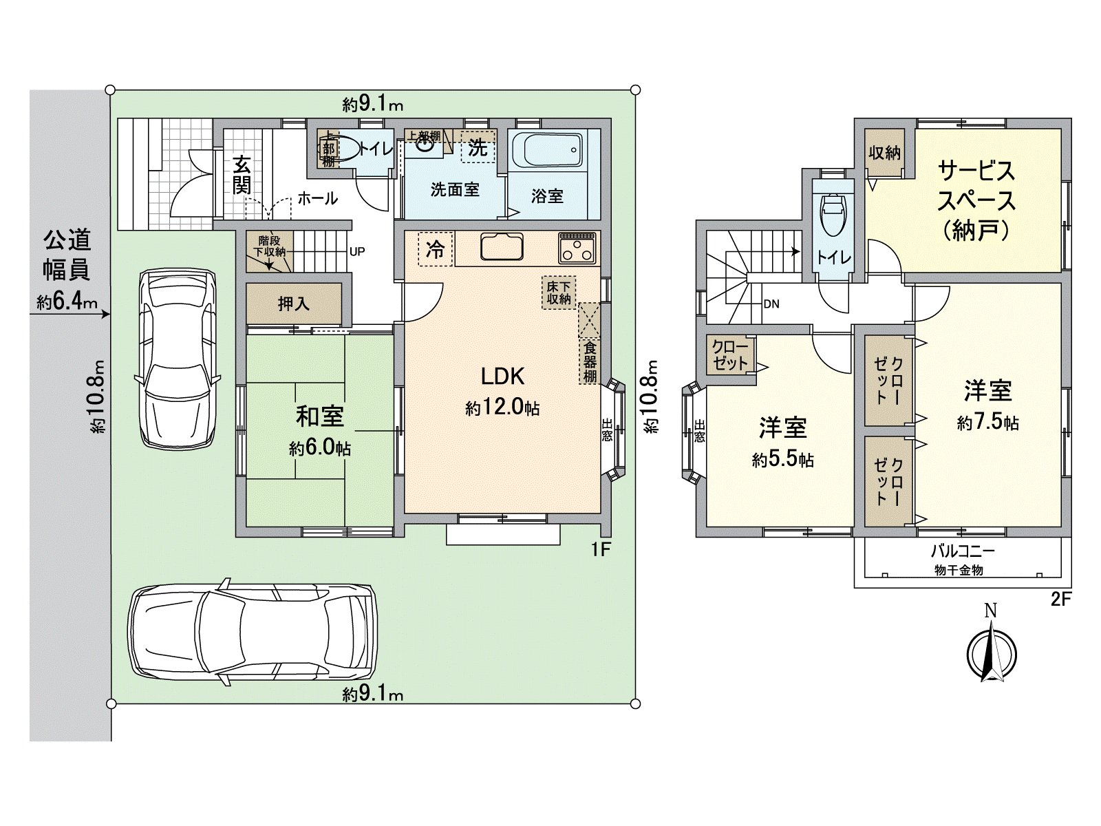 ○ 約6.0張塌塌米和式房間在1樓