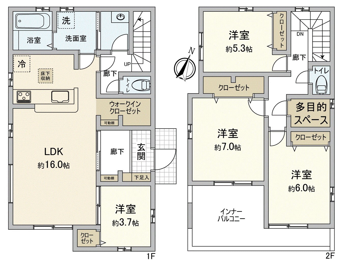 ○注視LDK舒適的約16張塌塌米,家族的客廳通過樓梯