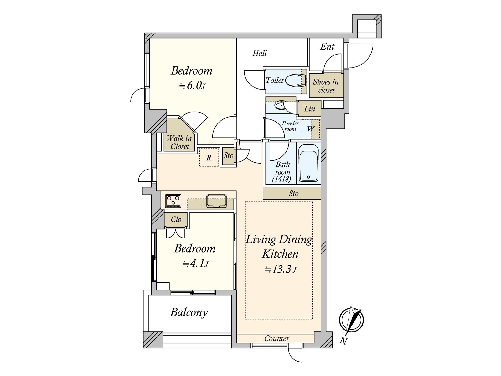 ○ 有走入式鞋櫃·嵌入式衣櫃、壁面收納(客餐廳)