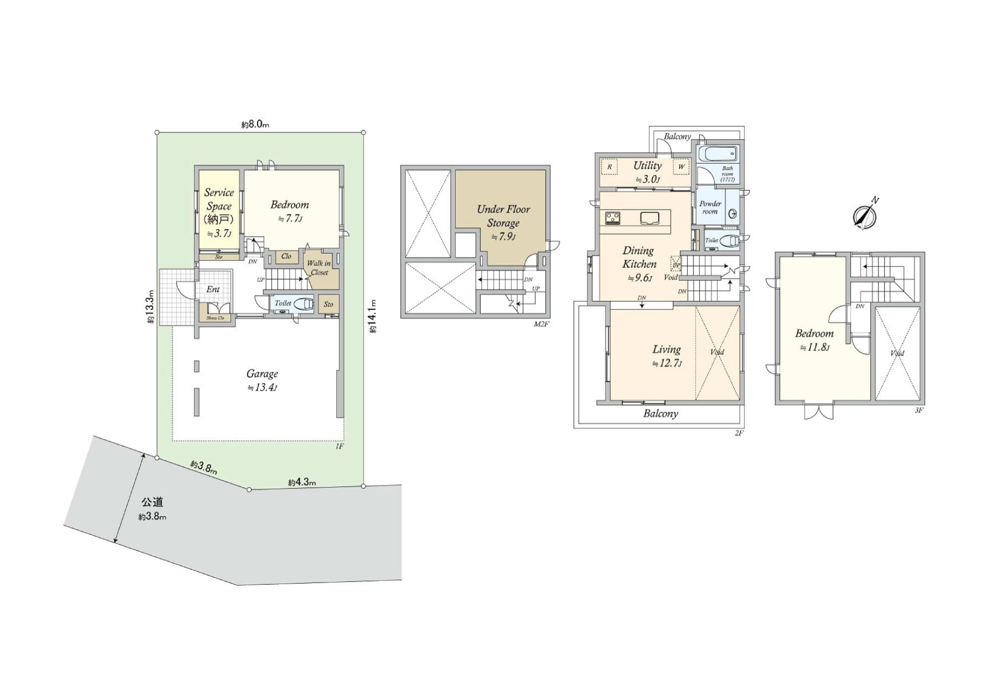 ○多功能室以及嵌入式衣櫃,1樓地板下邊收納等的豐富的收藏力
