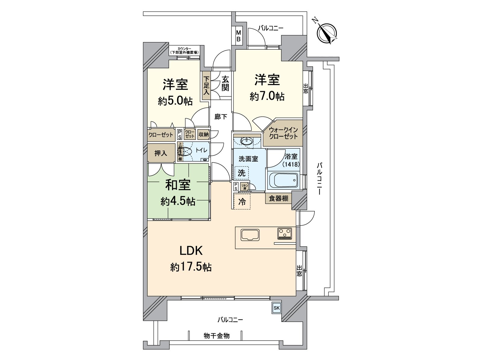 ・對約7.0張塌塌米西式房間,收納力高的嵌入式衣櫃的
