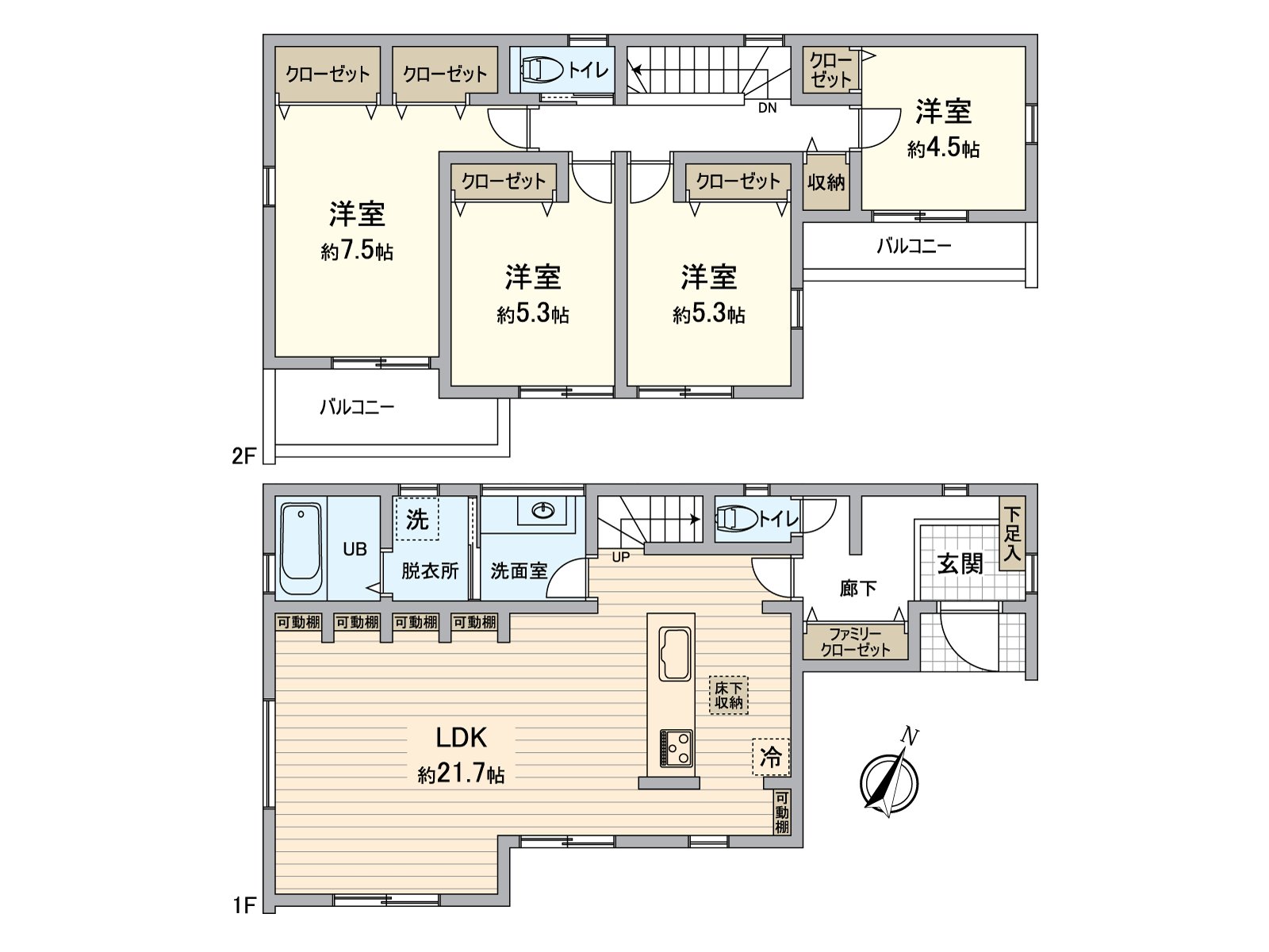 ・面向陽台的亮的西式房間(約7.5張塌塌米,約4.5張塌塌米)