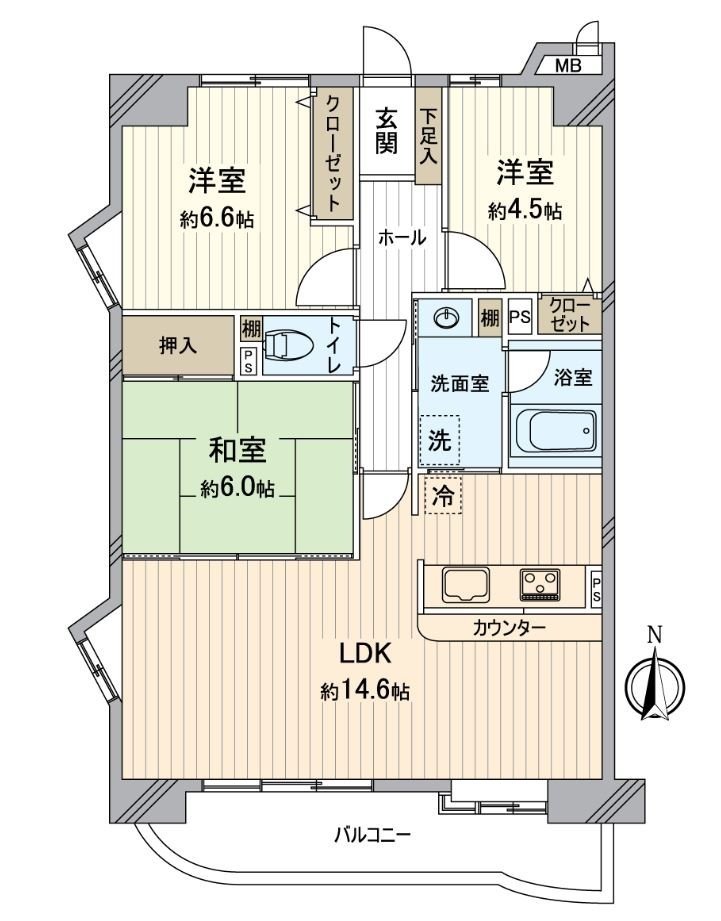 ・私人使用面積約74.59平方公尺,舒適的3LDK房型
