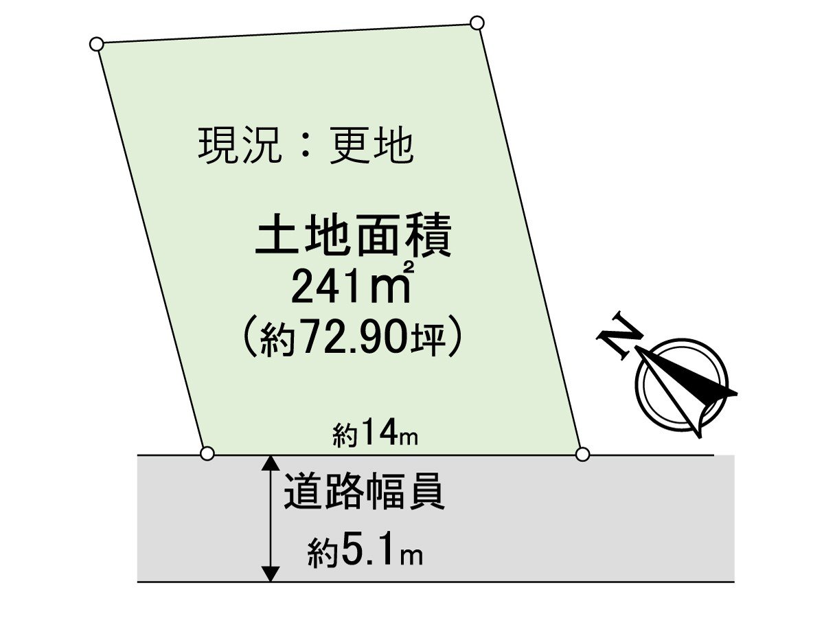 ■三井Rehouse■ ○用地面積241平方公尺(約72.9坪) ○陽光在西南一側道路良好 ○接道間口約14m ○前面道路幅員約5.1m