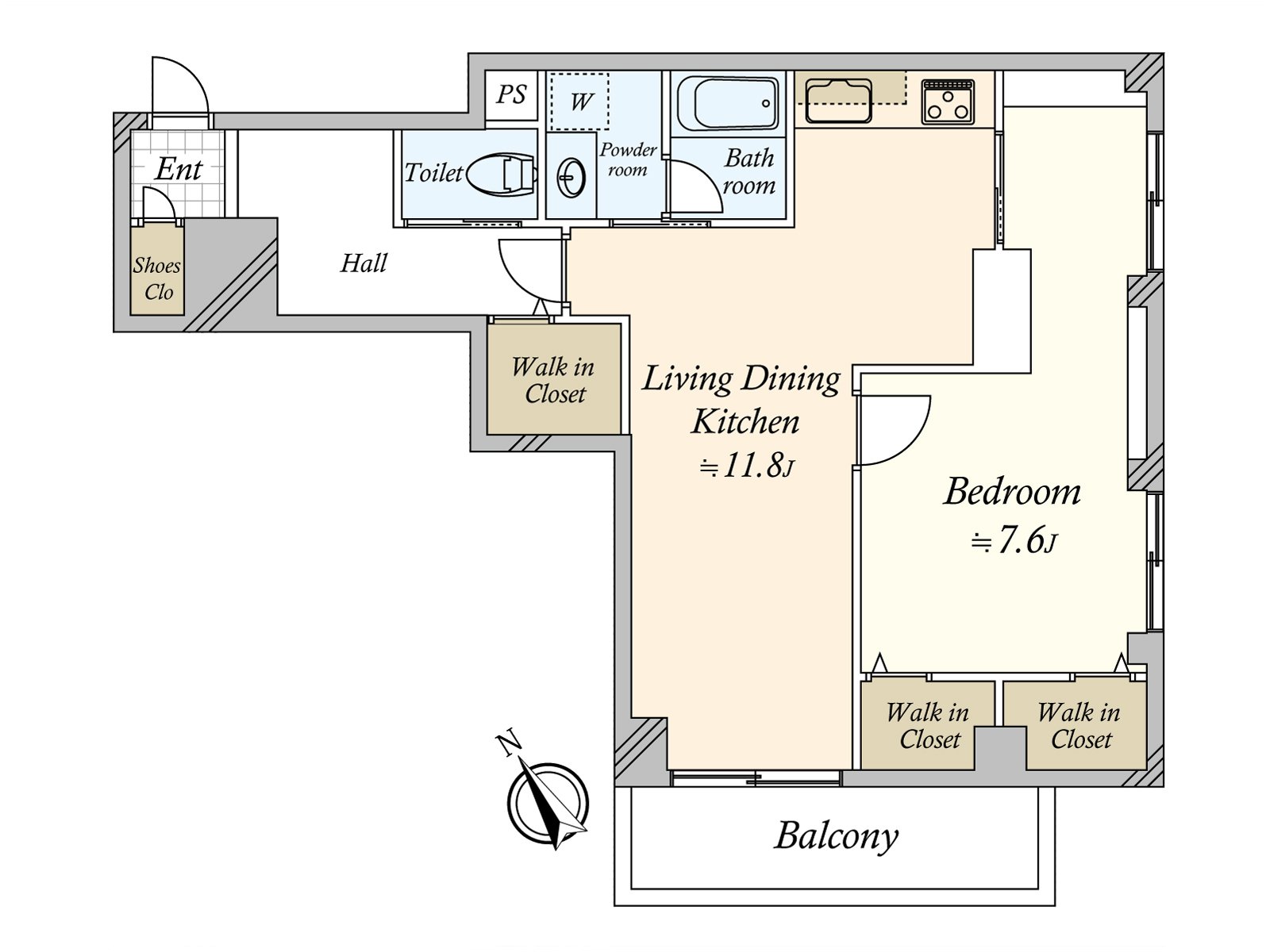 ○ 13層的7樓部分的1LDK,私人使用面積51.34平方公尺