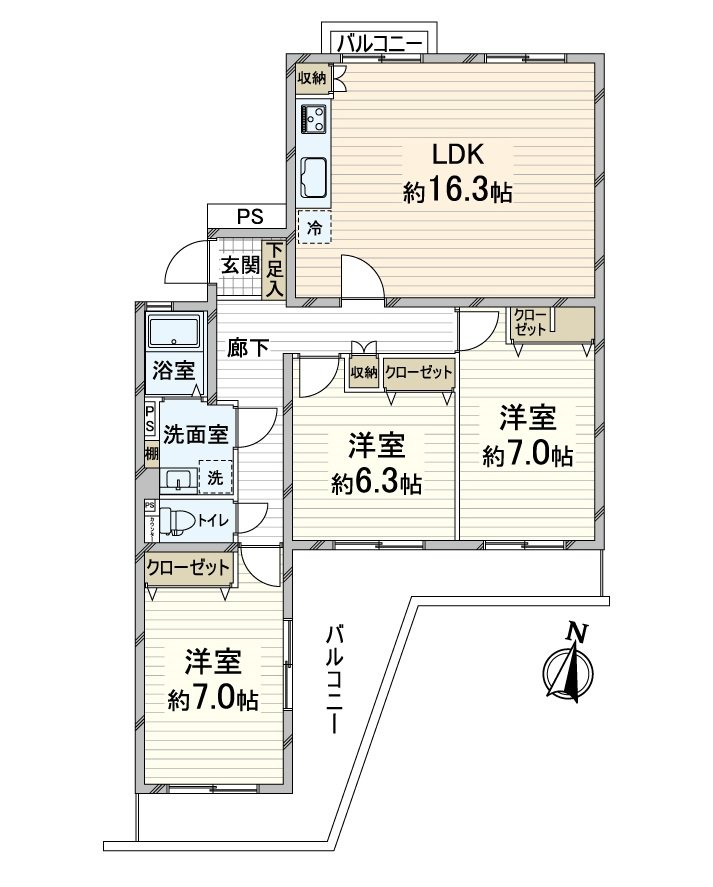 ・私人使用面積85.57平方公尺,超過6張塌塌米全居室的3LDK
