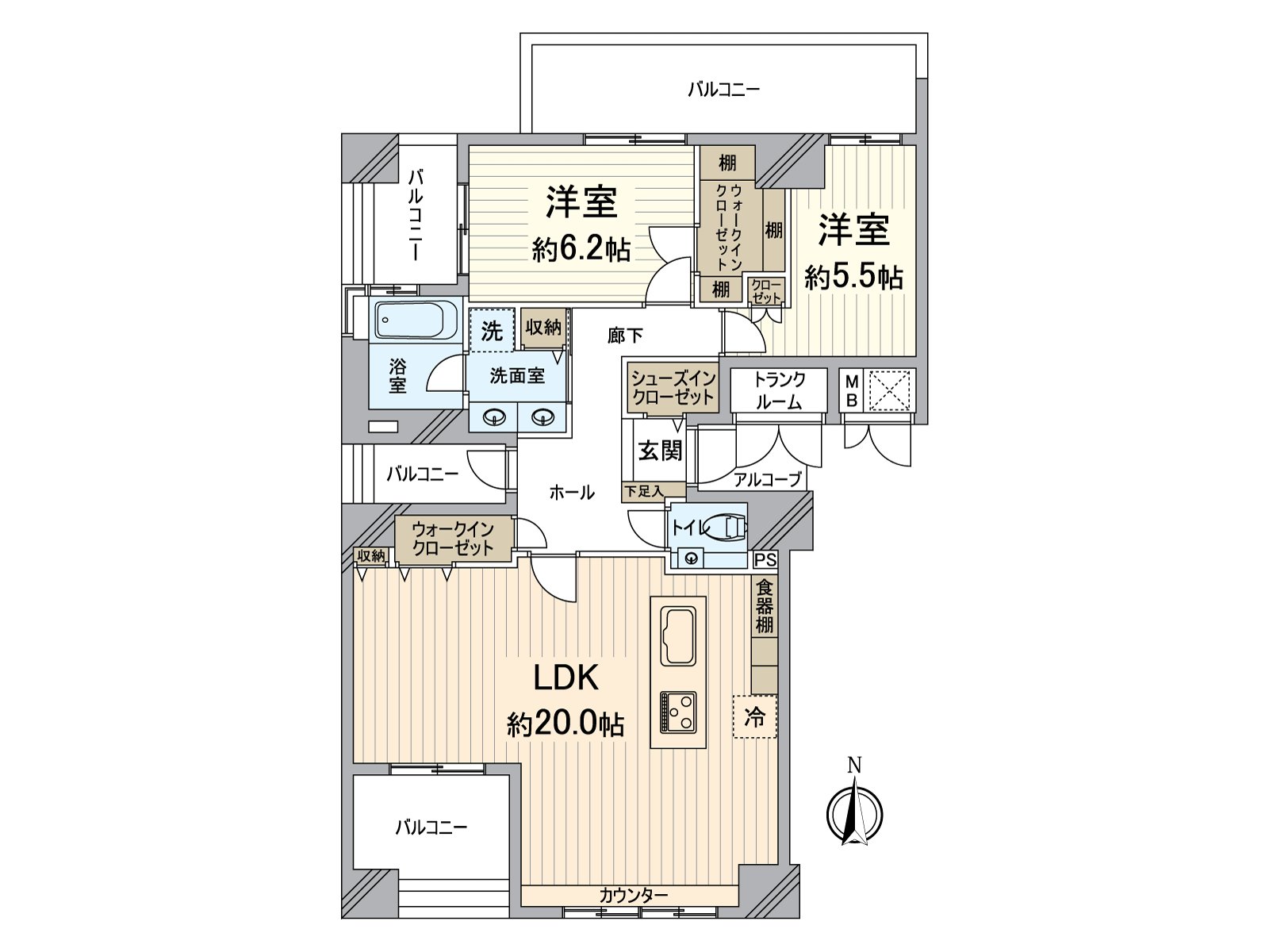 0 私人使用面積92.33平方公尺的2LDK