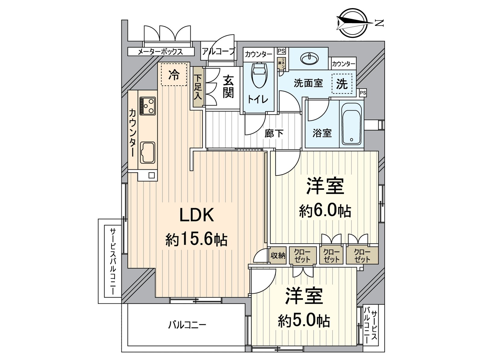 0私人使用面積64.11平方公尺的2LDK