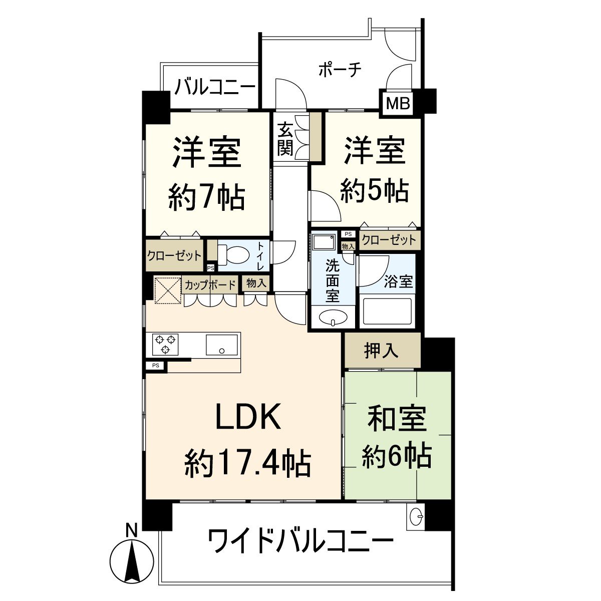 ○ 有76.49平方公尺、3LDK的舒適的房型